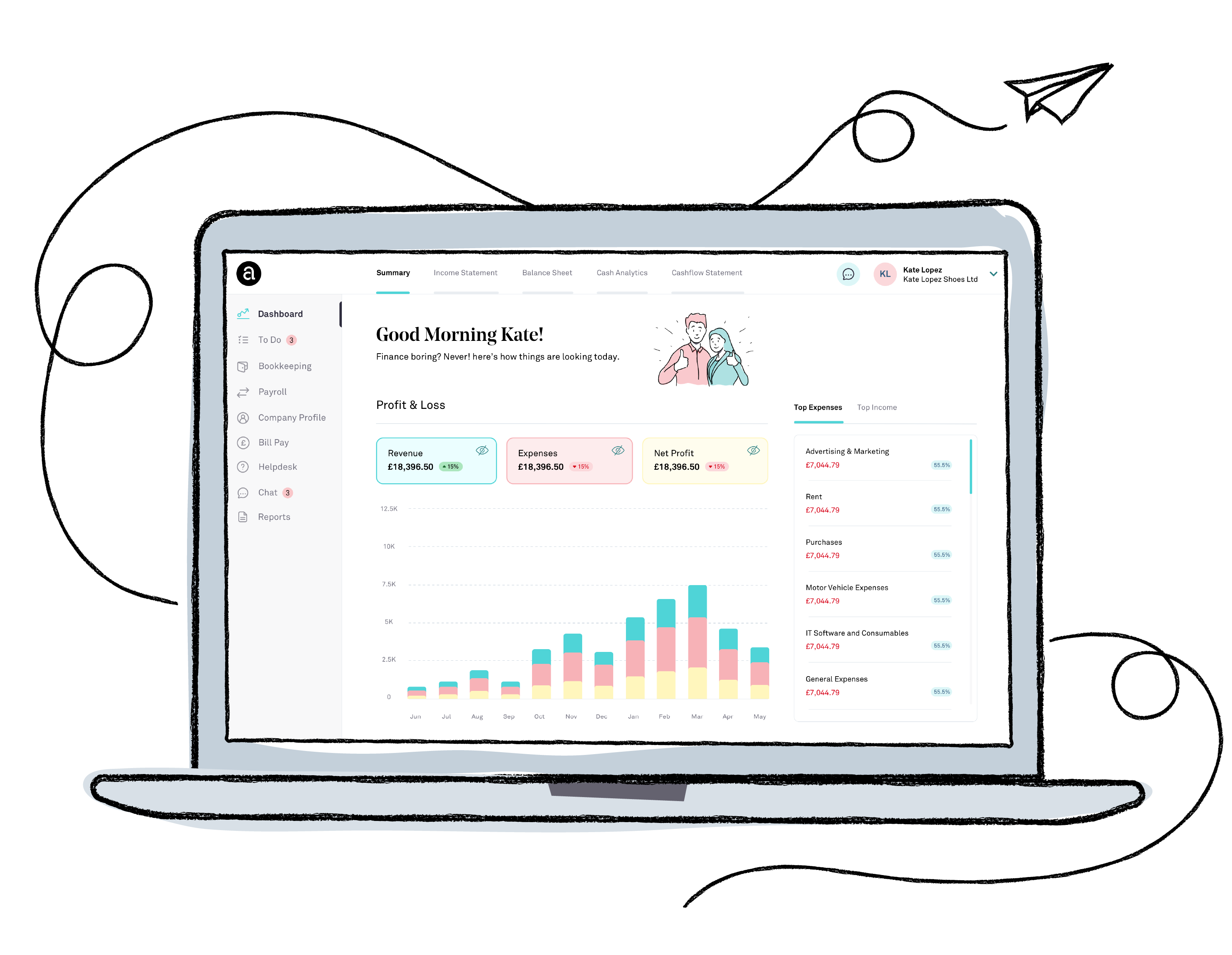 Included in our service, each customer gets in-house software to access live financial dashboards and real-time management reports.
